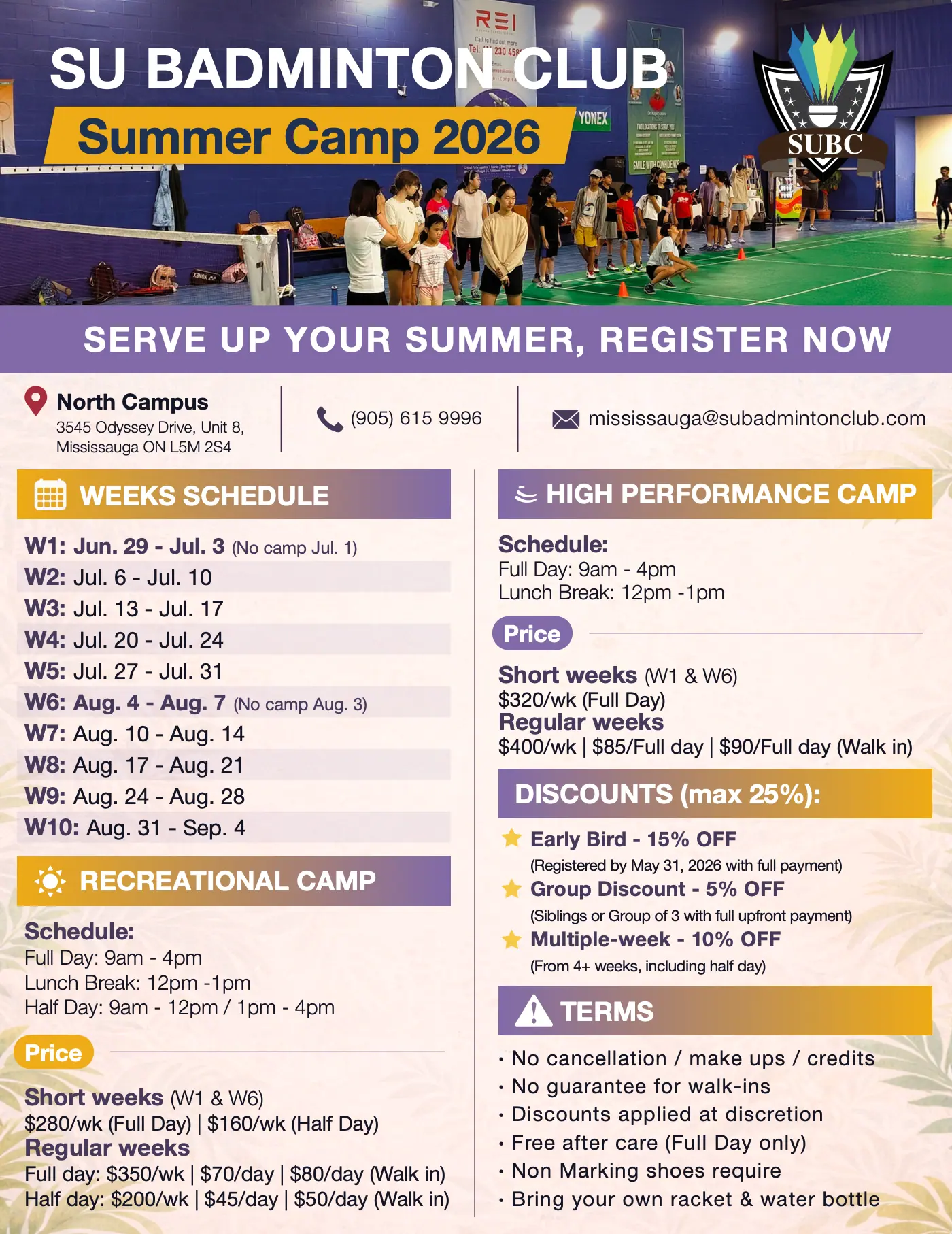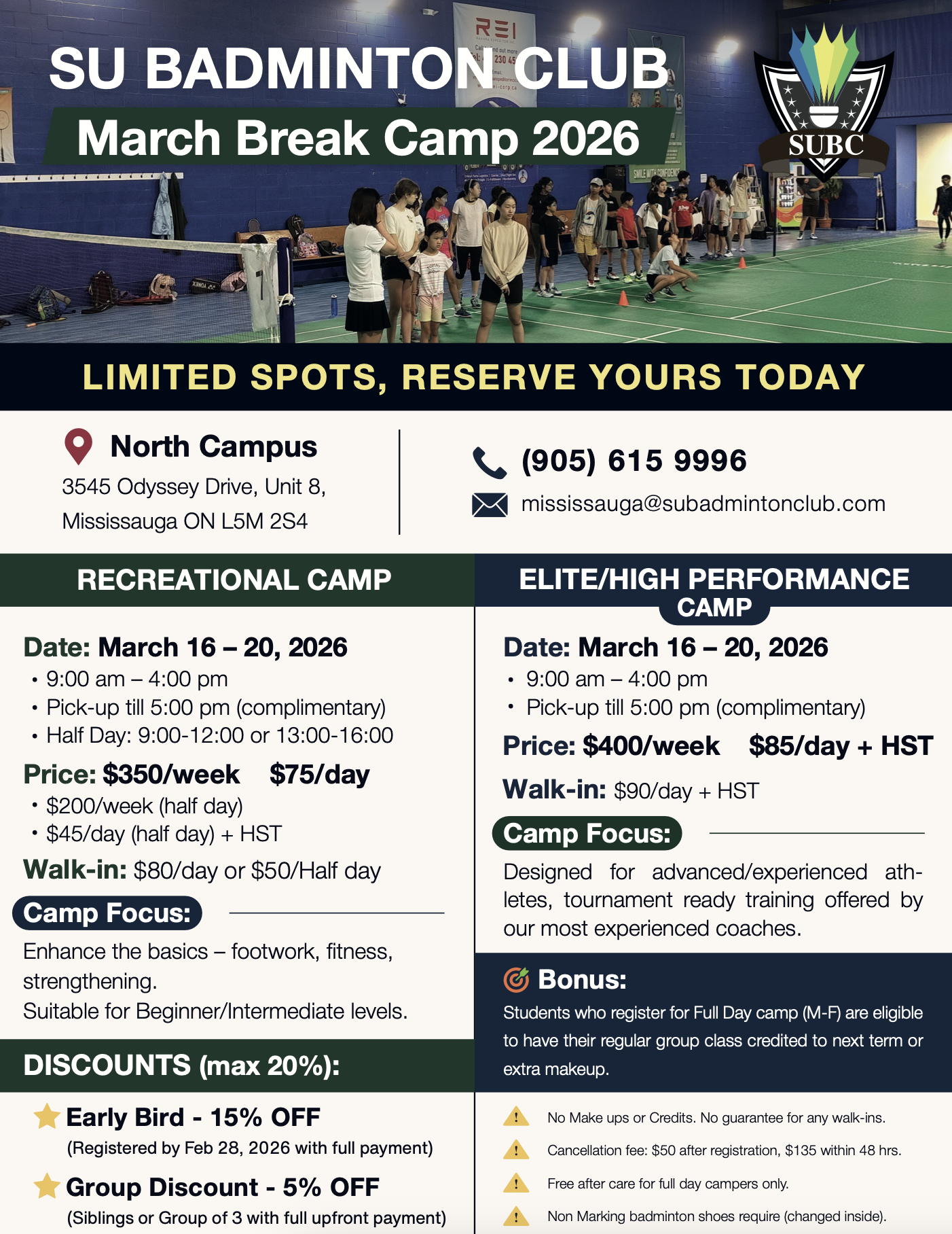 3545 Odyssey Drive, Unit 9, Mississauga ON L5M 2S4 Tel: (905) 615 9996 Email: mississauga@subadmintonclub.com